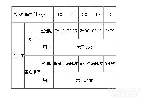 4.1亲水抗静电剂的不同用量对织物亲水效果的影响(结果见表1):