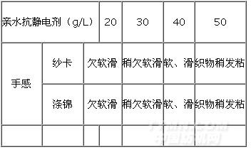 4.2亲水抗静电剂的不同用量对织物手感的影响(结果见表2):
