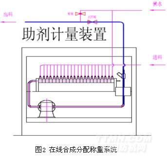 为保证计量的准确性和耐用性,采用耐酸碱、耐腐蚀的高扬程动力泵作为远程输送装置,染料或助剂计量采用高精度流量计和合成分配器以变频方式控制计量。结构如图2所示。