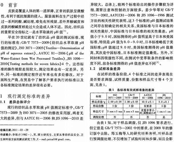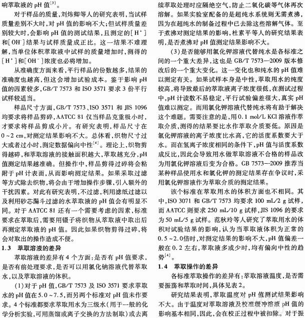 纺织品水萃取液pH值测定标准的差异分析
