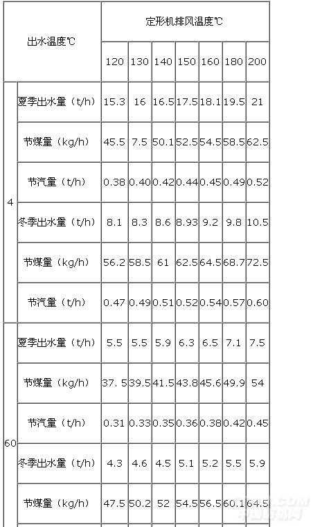 注:1、以上数据均为一台定形机(两台换热器)的数据。