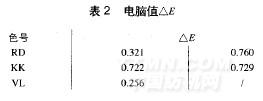 安排小样生产每班打l条,连续3班,表现出较好的重复性,电脑值见表2。另从大货生产所织5层袜样看,即便是敏感色VL色所表现出的内外差比较好。