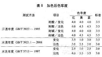 从表8可以看出,其中水洗、水渍变色牢度较差,原因如下。
