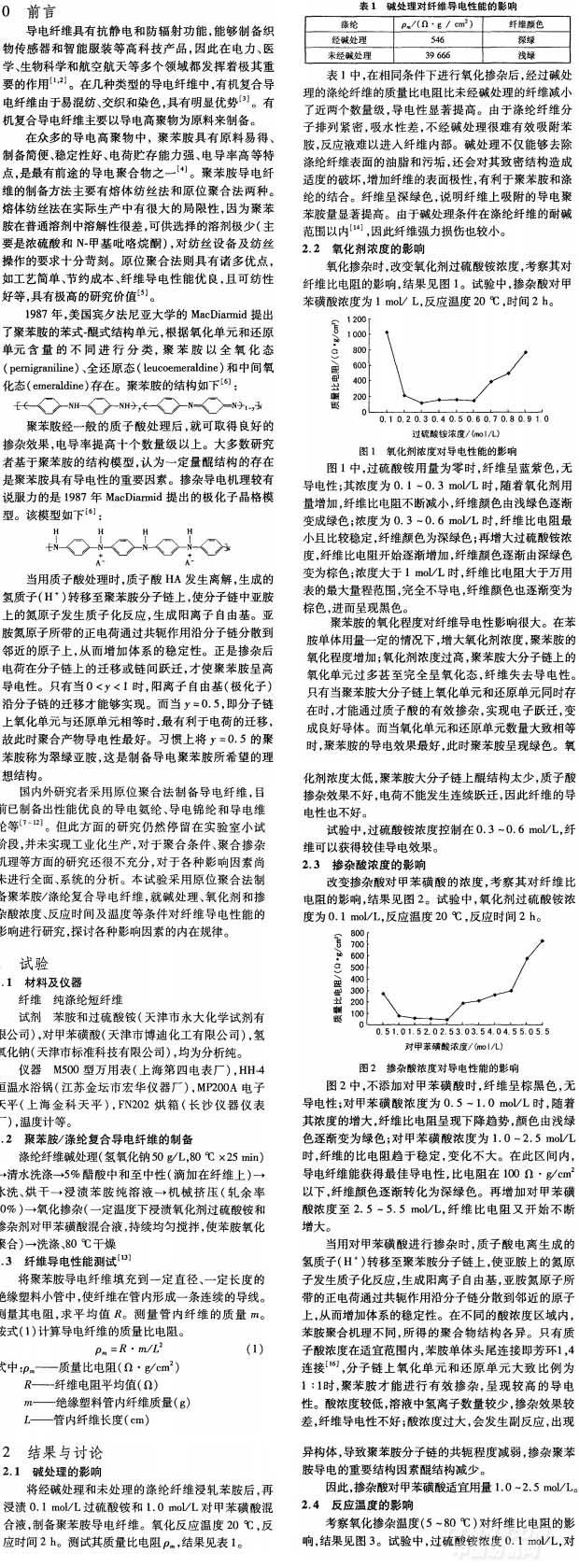 关键词:功能性整理;导电纤维;聚苯胺;聚对苯二甲酸乙二酯纤维