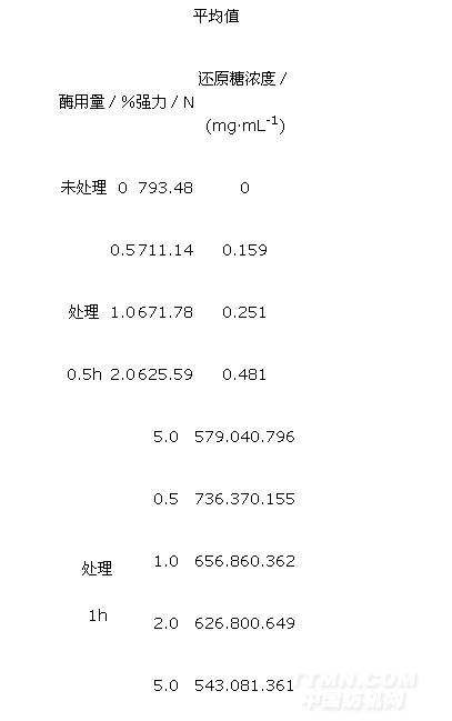对应表1和表2工艺处理的织物进行了顶破强力和处理残液的还原糖含量测试,结果见表7。