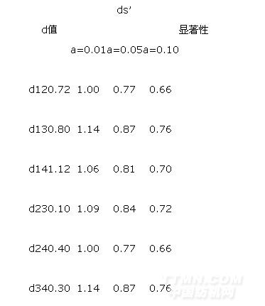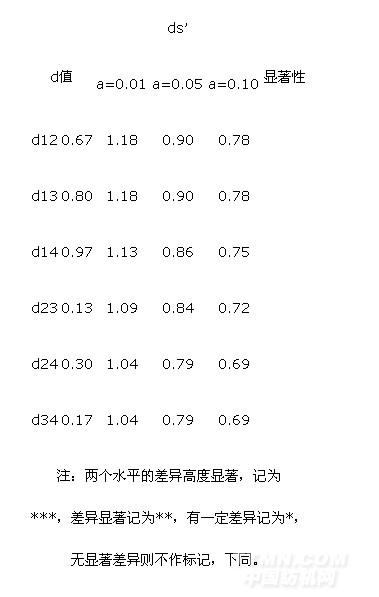 根据方差分析的一般规定凹进行分析,从表5可知,疏松织物经酶处理1h,酶的用量对疏松织物起毛起球等级的影响高度显著。运用Scheffé法[4]进行分析,从表6中发现,0.5%与5.0%的两个水平的差异对疏松织物起毛起球等级有高度显著的差异,而0.5%与1.0%、2.0%两个水平之间分别有一定差异,其他用量之间无显著差异。