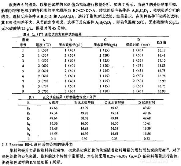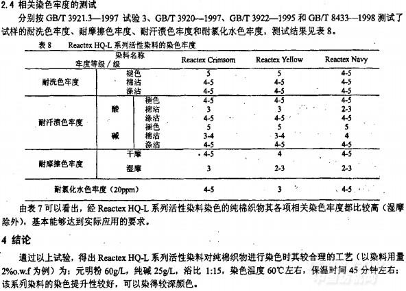 Reactex HQ一L系列活性染料对纯棉织物的染色工艺研究