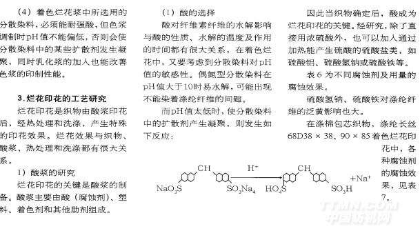 (2)酸浆中糊料的选择用于烂花印花酸浆的糊料,必须具备下列条件。