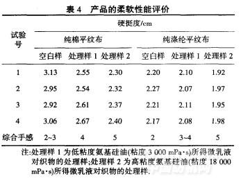 在进行产品应用性能的试验过程中,所配制的氨基硅油微乳液没有出现分层、破乳、漂油等现象,所整理的织物样品也没有出现油斑.