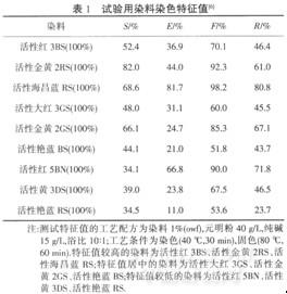 织物:20S×20S 128x60全棉纱卡漂白布;药品:无水硫酸钠、无水碳酸钠、氯化钾、柠檬酸钠(均为化学纯,西安化学试剂厂),中性净洗剂LS(工业品,江苏新桥助剂厂),染料及其染色特征值如表1所示.