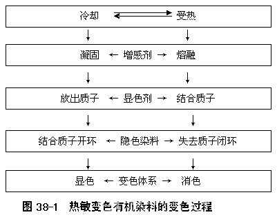 热敏变色有机染料其变色为可逆的,其变色过程见图38-1:
