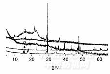 图3所示为海藻酸钙纤维及其凝聚相裂解产物的X射线衍射分析( X R D) 曲线。