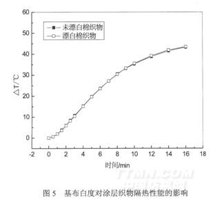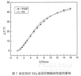 图7为涂层剂对Ti02涂层织物隔热性能的影响