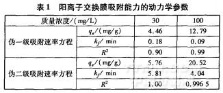 从表2可知,Langmuir吸附等温线较符合吸附过程,能更好地描述阳离子交换膜对阳离子红X—GTL的吸附行为,该吸附过程属于单分子层吸附。