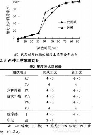 (2)代用碱代替纯碱,利用其缓染性,减少色花,增加染色的匀染性能,提高染色质量。.