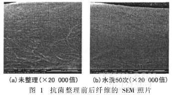 抗菌整理前后棉纤维的SEM照片见图1。