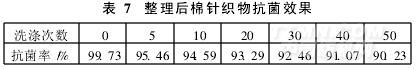 抗菌整理后棉针织物的抗菌效果见表7。