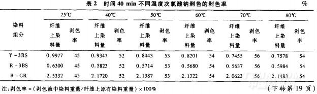 测定同一时间不同温度次氯酸钠剥色的剥色率,结果如表2所示。