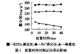 取样品TF-510,分别按1.4方法测定,每种方法在滴定前分别放置5、lO、20、30、40 min,结果见图1.