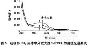 (3)在线监测系统也可方便地用于监测和评价超临界染色系统的清洗过程及效果。对活性分散红GG及分散大红S—BWFL染色后,采用适当的清洗工艺,超临界CO2流体本身可实现对染色循环系统的清洗。