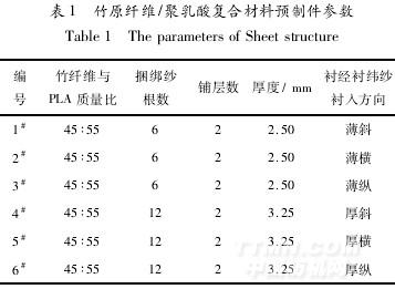 由于一次模压后板材一面成型并不很好,现按以上工艺进行二次模压获得较成功的复合材料板材预制件,预制件结构参数见表1。