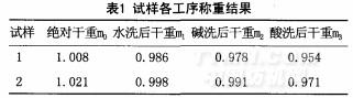 按章节3 树脂含量的测定过程进行各工序处理后称重,结果见表1: