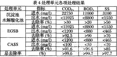 调试运行成功后,对各处理单元进行连续10d每天取样2次的定期监测。各处理单元的处理效果见表4。