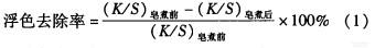 浮色去除率用电脑测色配色仪测定染色织物皂洗前后的K/S值,并用式(1)计算浮色去除率: