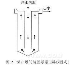 深井曝气装置的结构可分为同心圆式、U型管式和隔板式三种,该公司采用同心圆式(见图2)。