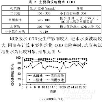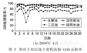 2.2.1主要构筑物COD去除率分析