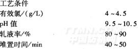 工艺流程翻布、缝头一烧毛(二正二反,车速70—80m/rain,液体灭火)一退浆一碱煮一氯漂一酸去氯(H2SO44—5g/L,常温堆置20~30min)一氧漂一半成品