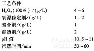 由表1可知,与传统前处理工艺相比,粘胶/亚混纺织物经生物酶两步法工艺处理后,强力损伤小效更高,白度稍低,织物厚实、丰满。其半成品可用后序染色和印花,性能优良。