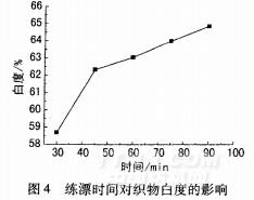 图4练漂时间对织物白度的影响