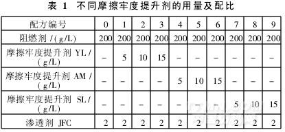 (1)摩擦牢度提升剂工艺处方采用表1配方,对麂皮绒进行阻燃处理。