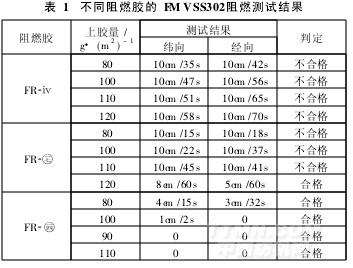 (1)根据不同的上胶量,选择不同规格的涂层刀。将FR-Ⅰ阻燃胶、FR-Ⅱ阻燃胶和FR-Ⅲ阻燃胶分别涂于尼龙牛津布上,其上胶量(干重)分别为80、100、110、120 g/m2,烘干温度135℃左右。采用FMVSS302