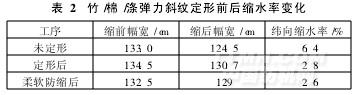 由表2知,弹力织物采用185℃,干布定形热区停留35s,即八节烘房热定形机车速41m/min,可满足印染成品纬向缩水率<3%的客户要求。