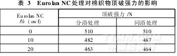 2.4 EurolanNC处理对棉织物顶破强力的影响