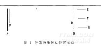 在平网印花机的导带液压传动生产过程中,夹持导带推进的推进电磁夹固定在飞机架上,液压系统带动飞机架在A、B两点间作往复运动,如图1所示。