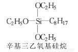 其中,R*为非活性基烷基,碳数4~10为佳,碳数过小时,硅烷易挥发,烷基过大时,硅烷的渗透能力差。烷氧基碳数1~4均可,但甲氧基在碱性条件下稳定性差,易与基材结合,影响渗透能力。德国wacker公司研发的SIL RESBS 1701有机硅防水剂主要成分为辛基三乙氧基硅烷,其分子结构式为: