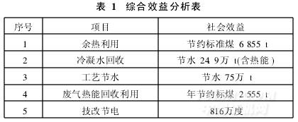 通过实施余热回收利用,产生的综合效益见表1。