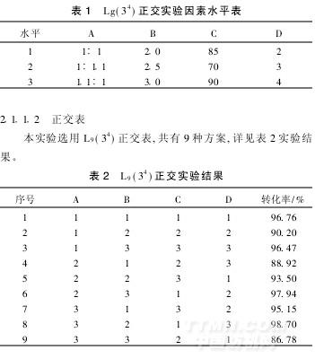开环反应采用A(聚乙二醇和环氧氯丙烷的投料比),B(催化剂三氟化硼-乙醚络合物质量百分比),C(反应温度℃),D(反应时间h)4种因素,并选取3个水平进行正交实验(见表1),找出主次因素。