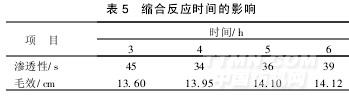 由表5可以看出,缩合反应时间为4 h,所合成的试剂渗透性和毛效均较好,故选择缩合反应时间为4 h。