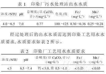 用CMF装置对污水处理站出水进行处理,出水水质结果如表4,由表4可见,利用CMF装置处理后的出水浊度为0.6NTU,Mn为0.067mg/L,pH7.0,达到印染工艺用水要求,但色度较高,Fe含量高