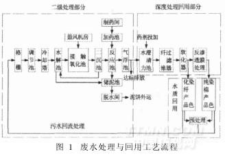 深度处理与回用工程应建立在污水二级处理良好出水的基础上,以形成完善的废水处理与回用系统。其工程的工艺流程见图1。
