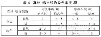 测试真丝/棉交织物染色后的色牢度,见表5。