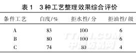 3种工艺的TG-410拒水拒油整理剂浓度均为50g/L。