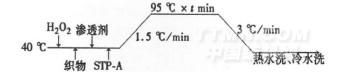 一浸一轧(防水剂DM-3640A20g/L)→烘干(100℃×2min)→焙烘(150℃×1min)→测防水效果