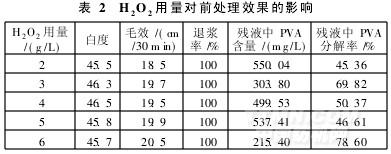 STP-A用量4g/L,其它条件同2.1.1节,考察H2O2用量对前处理效果的影响,结果见表2。