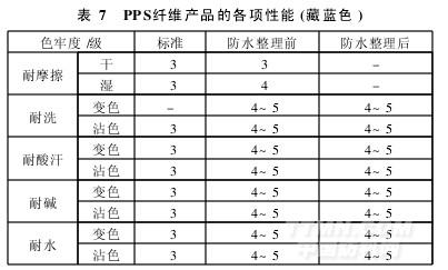 大生产PPS纤维产品的各项性能见表7。