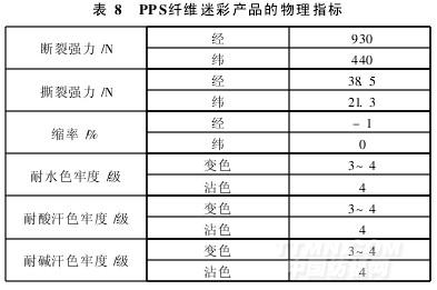 迷彩印花PPS纤维织物的物理指标见表8。